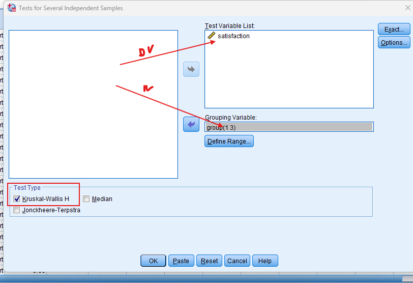4. Run the Test: Click ‘OK’ to run the Kruskal-Wallis H Test.