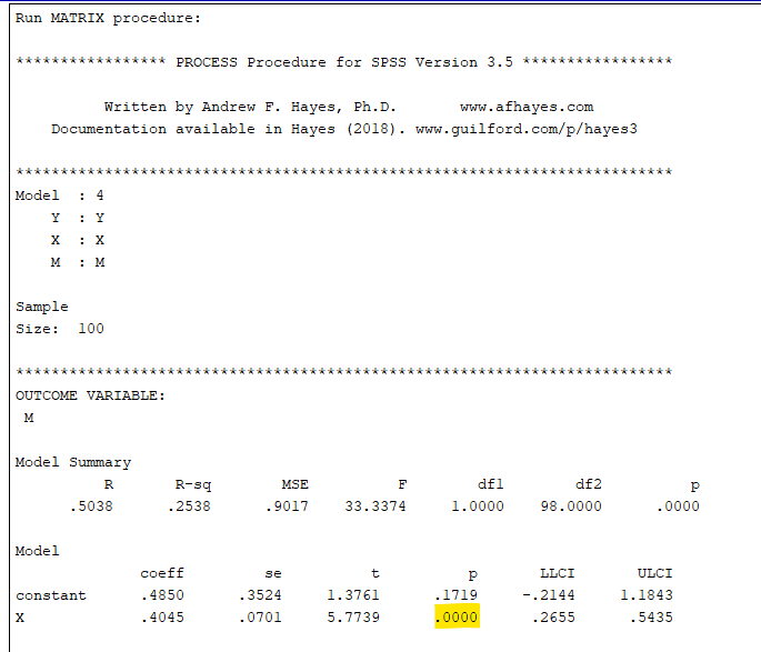 - (p-value): If the p-value is less than 0.05, the model is considered statistically significant, meaning the independent and mediator variables together significantly predict the dependent variable.