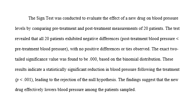 - Method: Describe the paired sample data and the procedure used to conduct the Sign Test in SPSS.