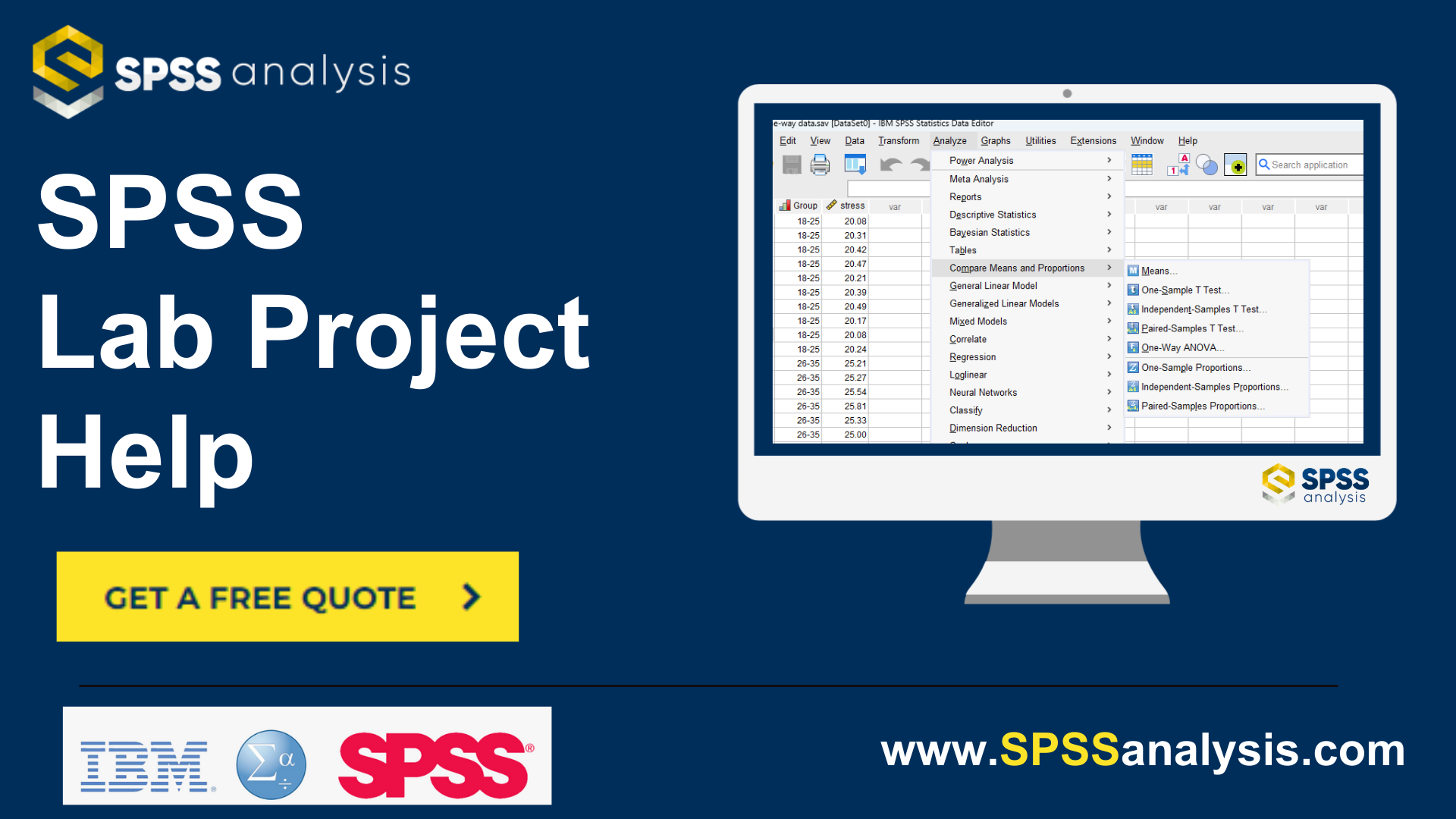 Getting help for data analysis in SPSS is a valuable approach, particularly for those dealing with complex research projects or data analysis tasks. SPSSanalysis.com provides comprehensive assistance, guiding you through the intricacies of SPSS data analysis. Our expert team is available to support you at every stage, from data cleaning and preprocessing to the execution of statistical tests and the interpretation of results. Whether you’re a student, academic, or professional, we offer customized solutions to ensure your data analysis is accurate, insightful, and aligned with your research goals. Get a Free Quote for the SPSS Lab Project Now!