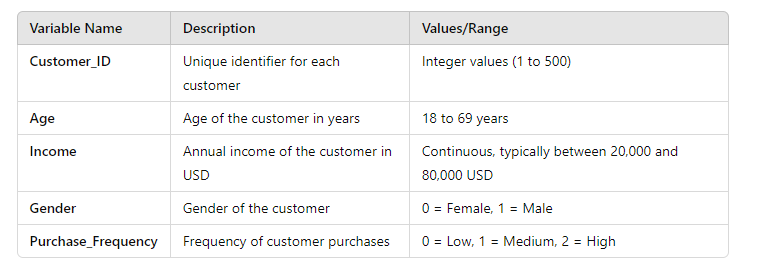 - Alternative Hypothesis (H₁): There are distinct clusters within the dataset, with each cluster representing a subgroup of observations that are significantly different from other clusters.